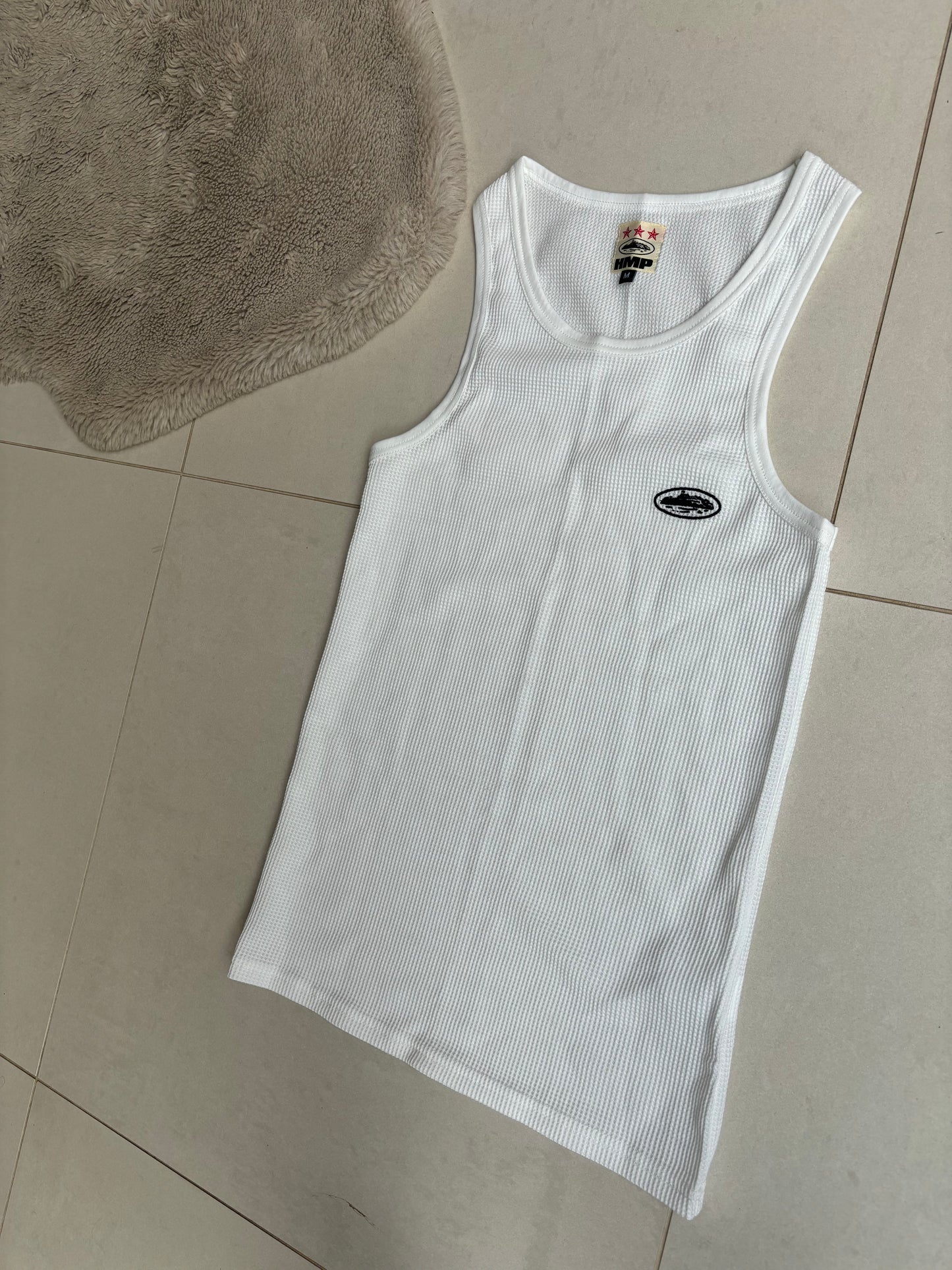 The Corteiz HMP tank top vest in white, size Medium, offers superior comfort and style. Made with high-quality materials, this vest is perfect for any occasion. Its new condition without tags ensures it is ready for immediate use. Upgrade your wardrobe with this versatile and fashionable piece.